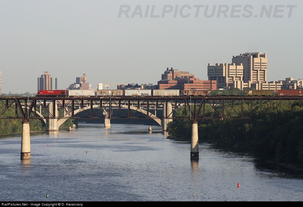 Job 17 heads across the Mississippi River with 30 cars for the grain elevators along Hiawatha Avenue.