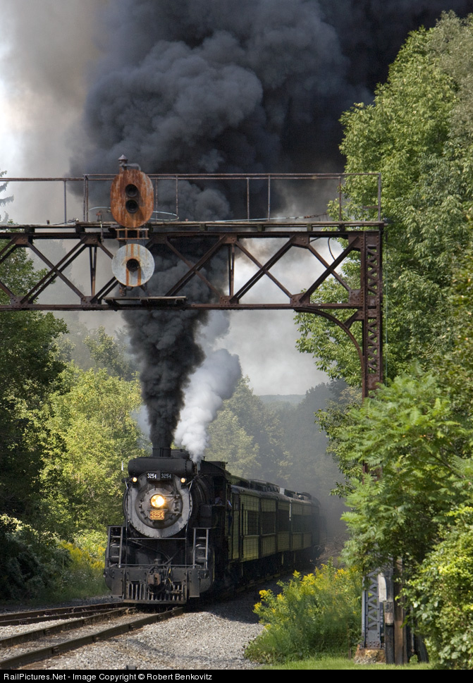 | The engineer lays on a thick blanket of smoke during the photo runby of Steamtown's Moscow excursion, blanketing the entire area with a nice layer of cinders. The first day of Lackawanna Railfest 2009 was blessed with almost perfect weather. |