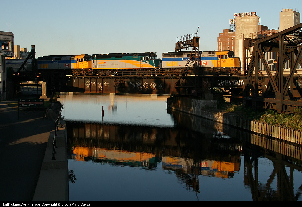 | A pleasant surprise awaited me as VIA 6452, the second unit, which was sidelined for years is reborn, rebuilt and wearing the Renaissance paint scheme. A visible difference is the door at the back giving access to a HEP; carbody was lengthtened and rear platform removed to accomodate it. Evening light and weather was perfect for a reflection shot of combined Chaleur and Ocean... |