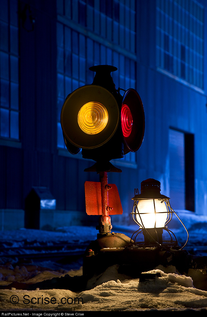 A Dressel switch lamp outfitted with day targets is on duty at the lead track of the Nevada Northern engine house. Image originally produced for a Railroads Illustrated piece that appeared in their May 2009 issue titled “Kerosene and a Little Imagination”, on page 36 of that issue. East Ely, Nevada. Feb. 11th, 2009. © Steve Crise Photo. Scrise.com