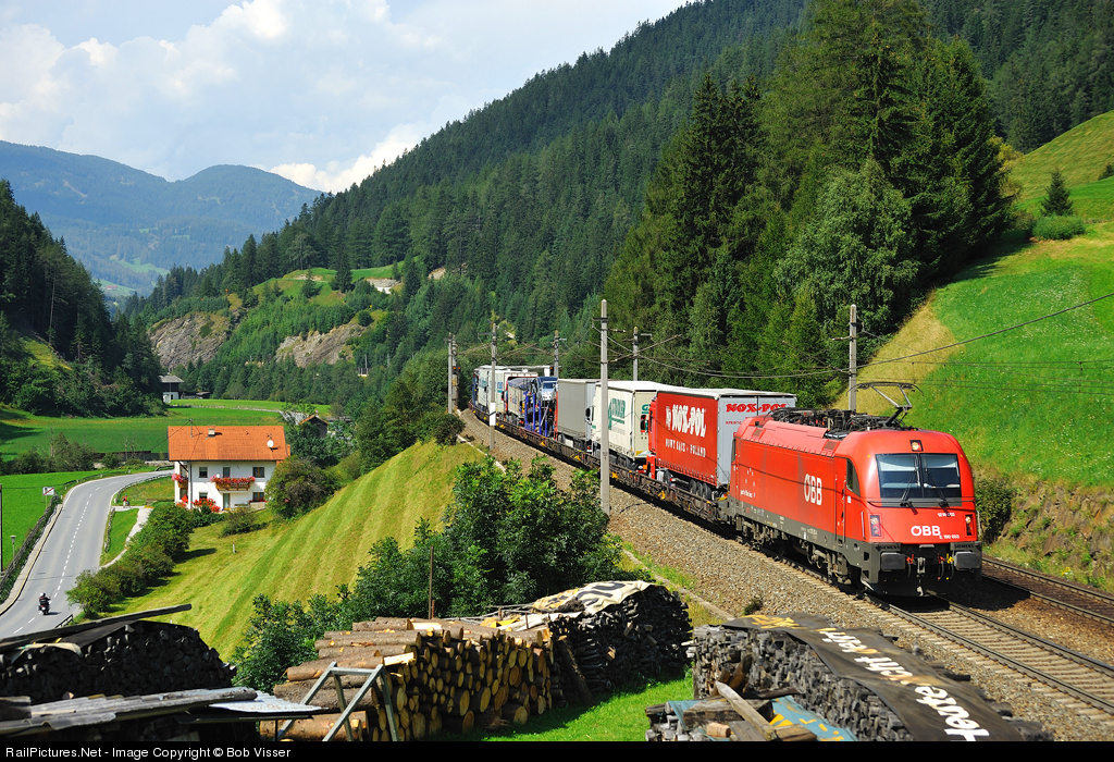 | These RoLatrains (RoLa = Rollende Landstrasse = riding highway) form the major part of freight at the Brenner as Austria is a quite expensive country for trucks to pass. |