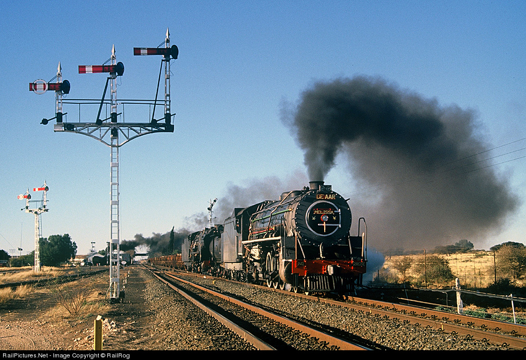 RailPictures.Net Photo: 2828 and 3300 Spoornet Steam 4-8-2 at Kimberley - De Aar mainline, South Africa by RailRog
