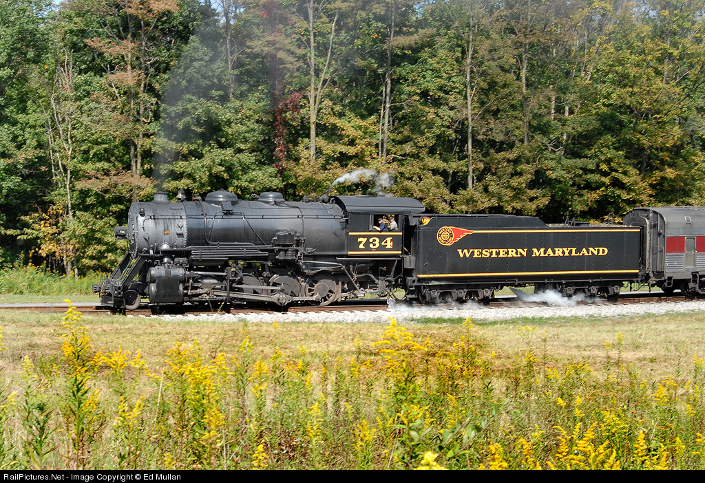 RailPictures.Net Photo: WMSR 734 Western Maryland Scenic Railroad Steam 2-8-0 at Cumberland, Maryland by Ed Mullan