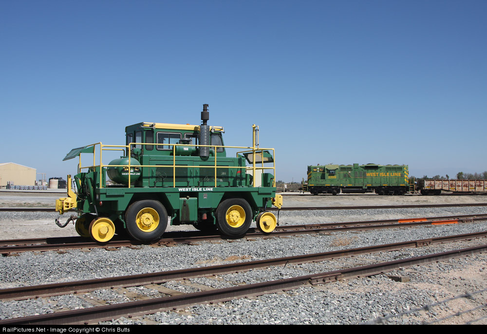 The entire roster of West Isle Line is in this photo - in the foreground is their Shuttle Wagon, in the background is their ex-SP GP9. West Isle Line operates 5.6 miles of ex-ATSF track from Alpaugh east to the BNSF at Stoil. They are owned by Crop Protection Services and their traffic is fertilizers.
