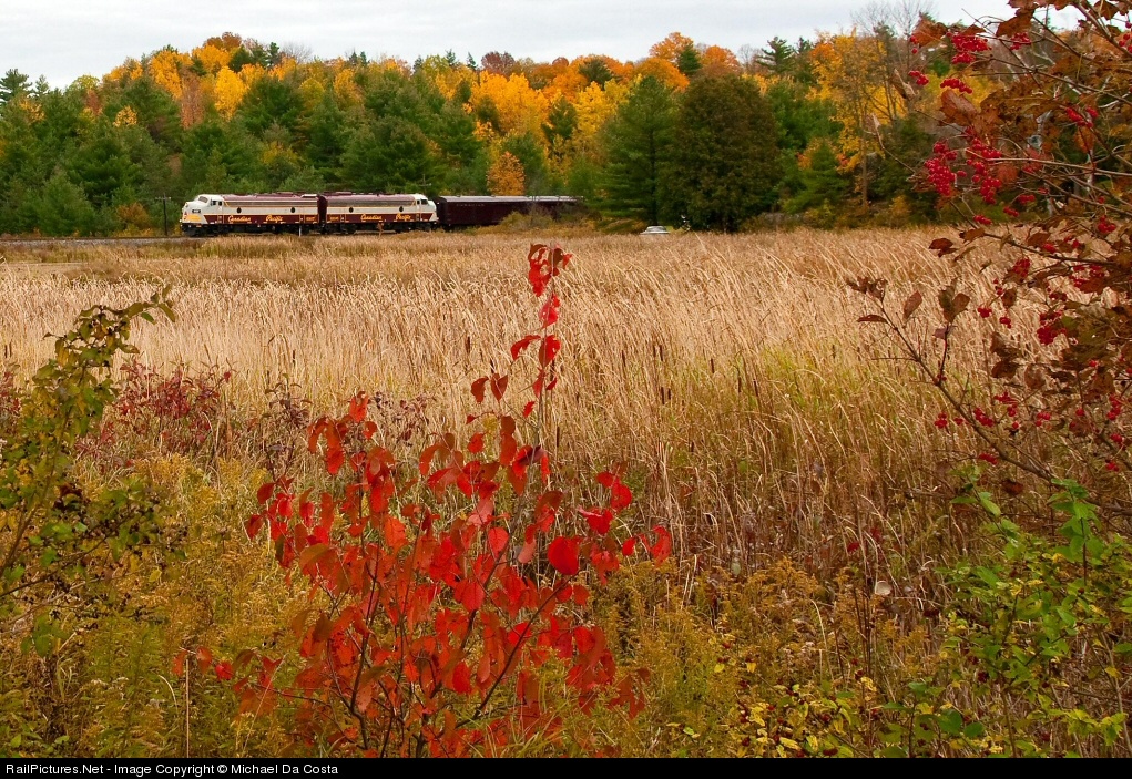| Fall was in full swing last year with trees changing colours along the MacTier Subdivision, here a northbound RCP train rolls through the countryside of Palgrave, Ontario. |