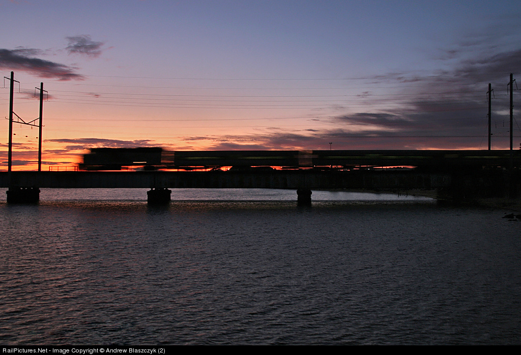 A Hoboken to Bay Head train crosses the Raritan Bay just after sunset on the last day of September.