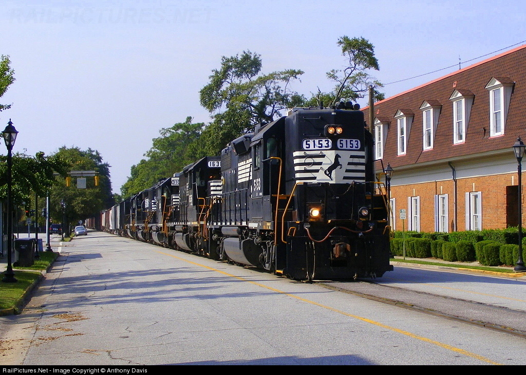 | Street Running Southern Style! Where else can you find a 4 axle Hi Hood leading a Main Line Freight Train? NS 5153 leads one of the biggest consist I've ever seen on 6th Street with a mix of ALL EMD 4 Axle and 6 Axle power. Sunday's usually bring out some of the goodies on NS 192/191 since that's when the Yard Power transfers are in control of these trains! |