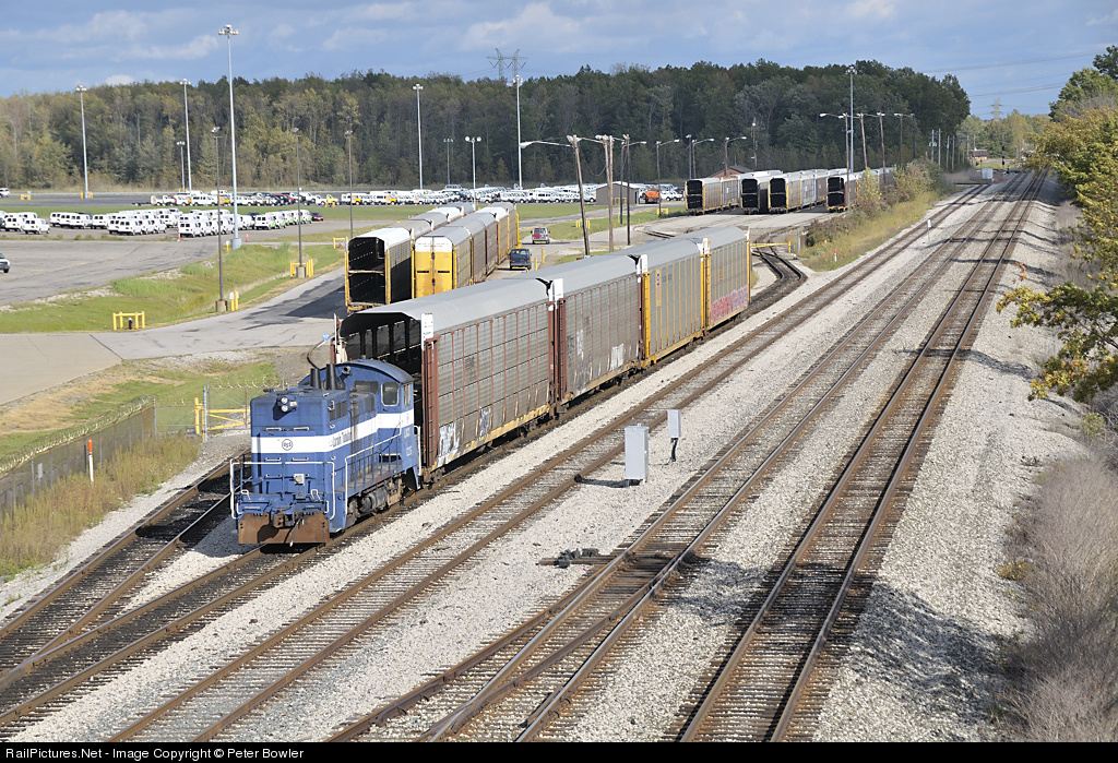 Commerce re-starts; inventory of Ford vans is building after months of inactivity. Auto racks at the plant are rolling, and Ford blue is pulling them (actually ex-US Steel switcher #1225 that Ford picked up in Lorain from Kobe Steel, the former US Steel plant there). Note the extensive modifications to this old switcher.
