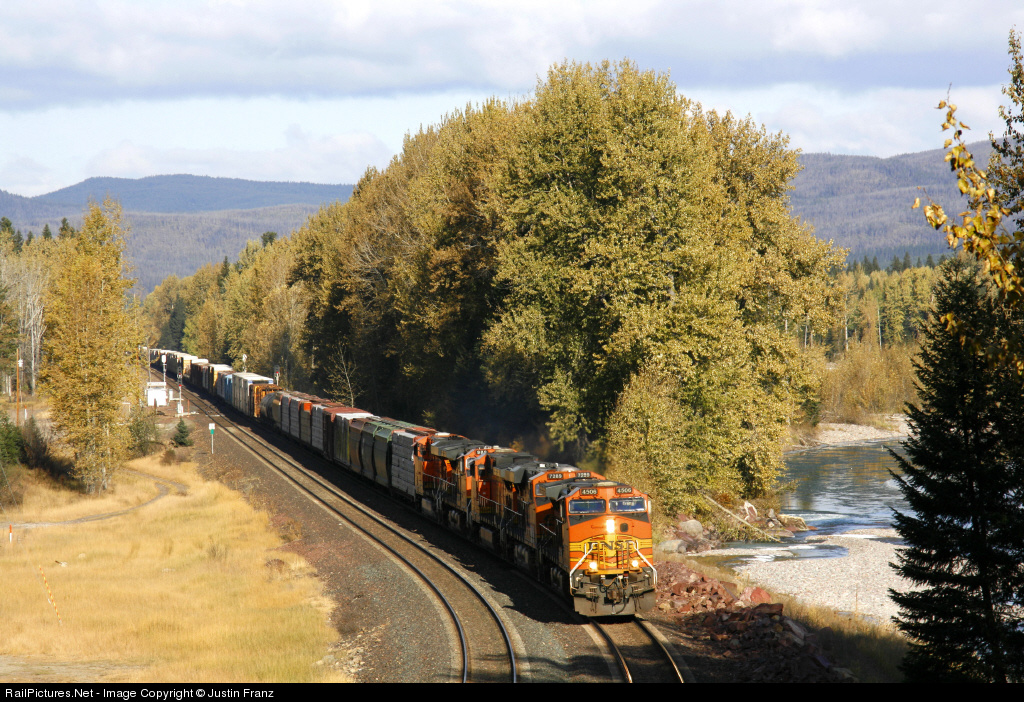 Railfans rush to the overpass along Rte. 2 as an eastbound mixed freight heads for BNSF's Marias Pass on the Hi-Line Sub near Red Eagle, Montana. Over 40 fans were on hand for the Alta-Mont railfan weekend held at the Izaak Walton Inn in Essex, Montana.