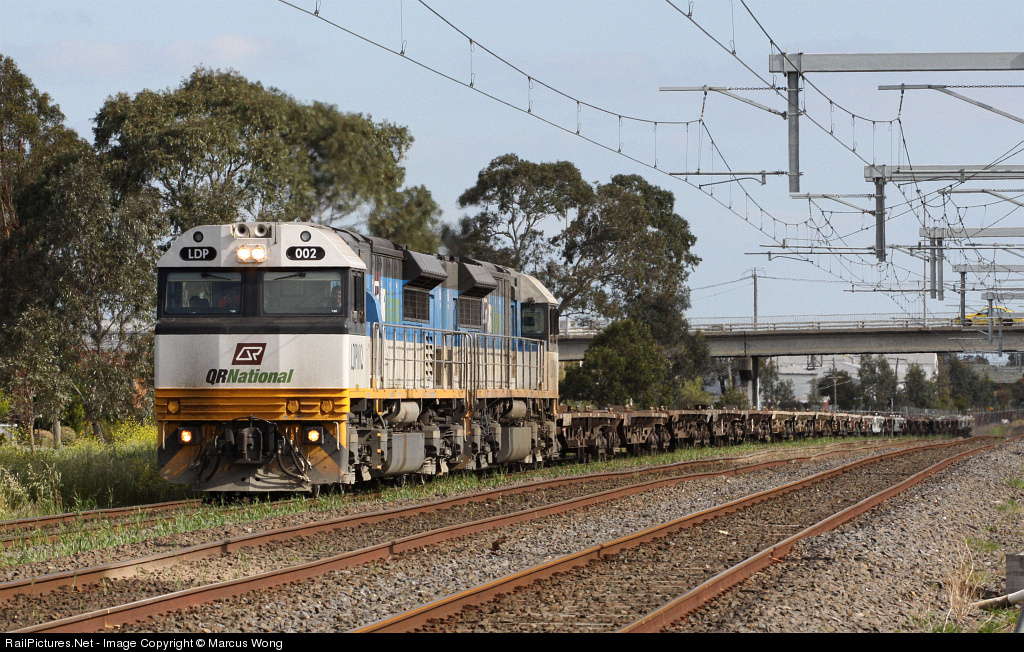 | LDP002 leads classmate LDP003 with an empty wagon transfer through Broadmeadows, bound for Somerton to run around |