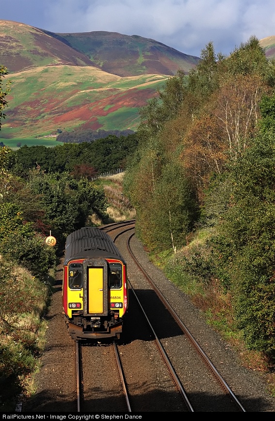 | The ex Glasgow and South Western mainline from Gretna, just north of Carlisle to Glasgow via Dumfries and Kilmarnock is a very under photographed route. This is surprising when considering the scenery is often superb, and the line carries a fair amount of freight as well. In this view we see First Scotrail unit 156506 climbing towards the Drumlanrig tunnel with a northbound service. Black Hill and Penbane can be seen in the background |