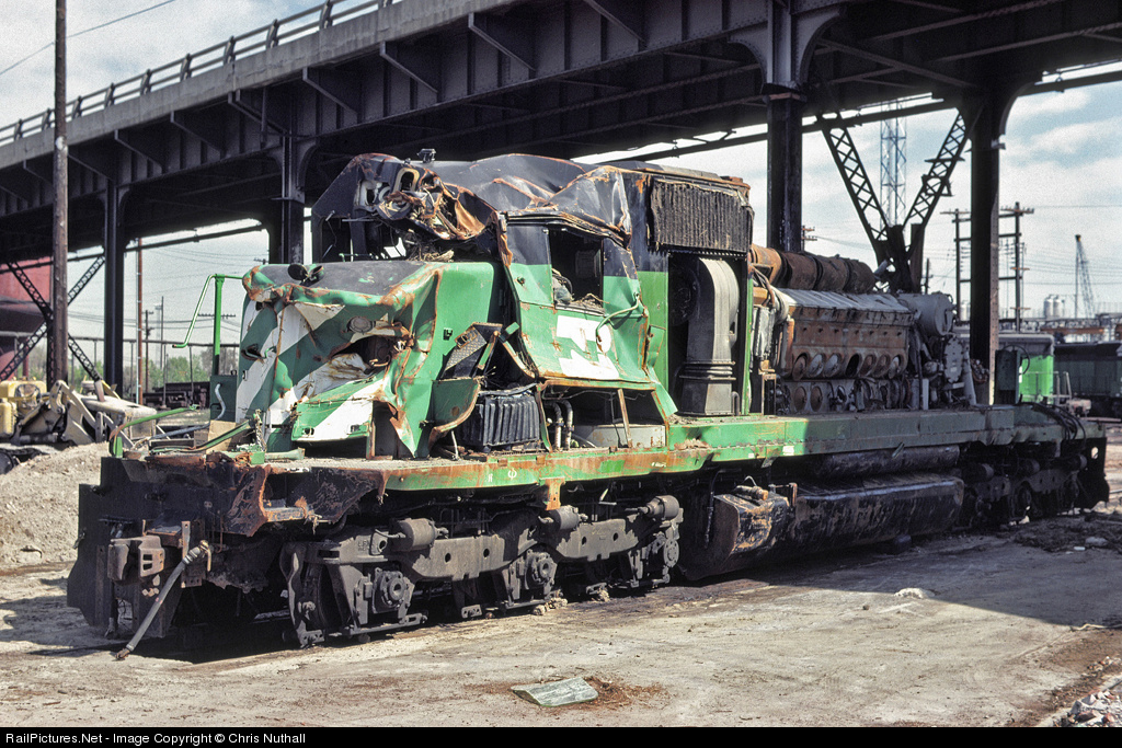 This SD40 was wrecked at Frijoles Creek, Trinidad, Co. on July 3, 1981 after a bridge wash-out, which sadly took the lives of two crew members. It was rebuilt as BN SD40B 7600 in 1982 and became Soo 6450 from 1987. (Thanks for the replies in the Comments below for confirming details).
