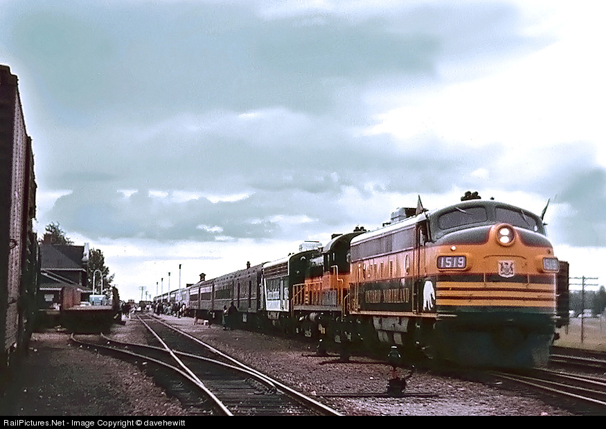 Sorry do not know the class of locomotive. Polar Bear Express waits at Cochrane before heading to Moosonee with a Sunday service way back in 1966.
