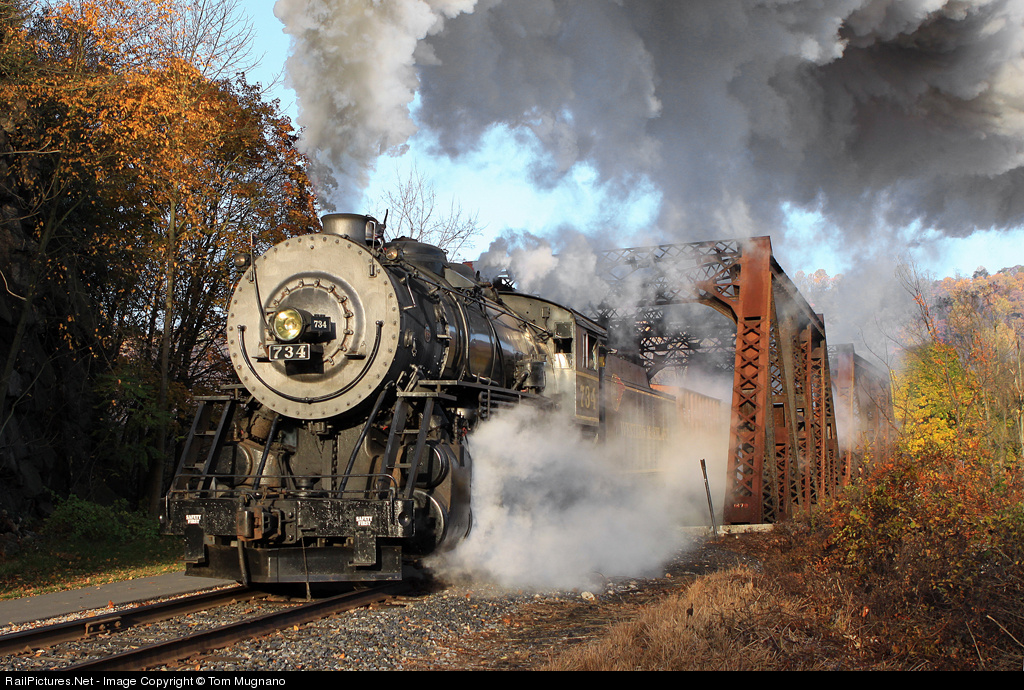 RailPictures.Net Photo: WMSR 734 Western Maryland Scenic Railroad Steam 2-8-0 at Cumberland, Maryland by Tom Mugnano