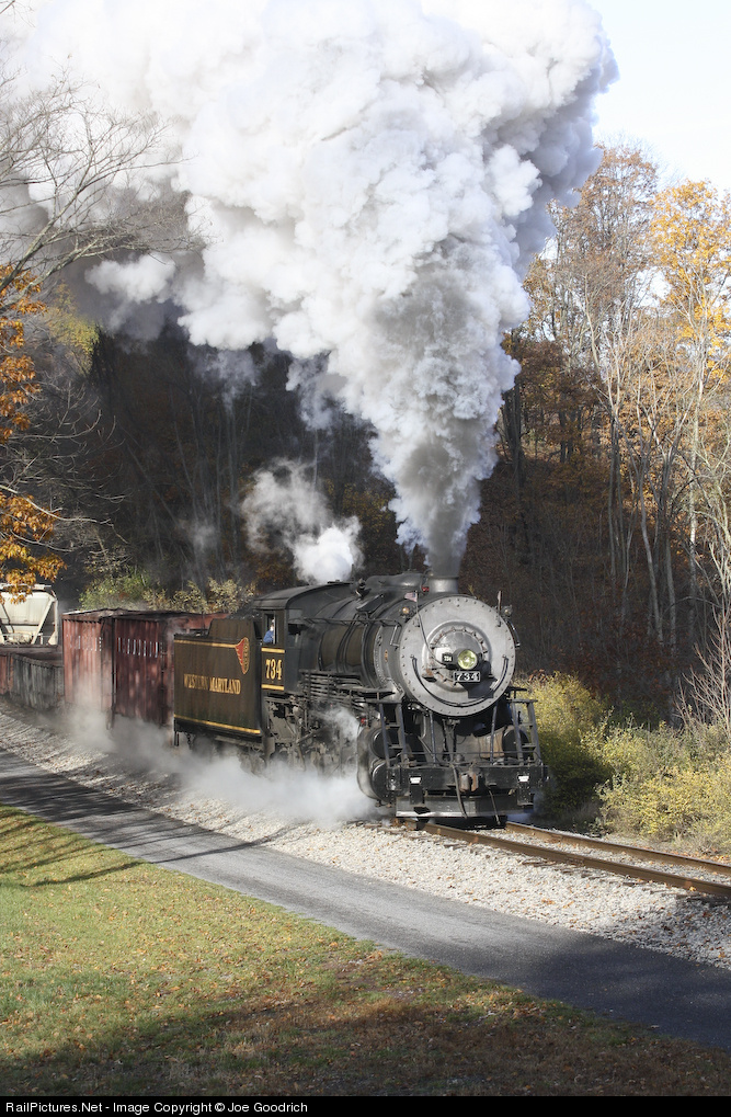 RailPictures.Net Photo: 734 Western Maryland Scenic Railroad Steam 2-8-0 at Cumberland, Maryland by Joe Goodrich