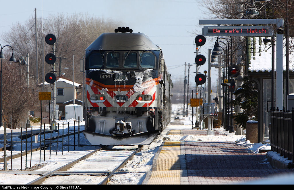 | A Cold day in Bensenville,IL as Metra 414 departs the station and heads east to Chicago,IL. |