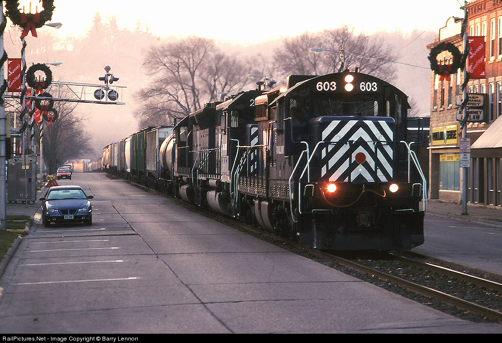 The morning after Thanksgiving finds SD9 603 leading an SD40 and an SD45 on this northbound going up the Marquette sub.