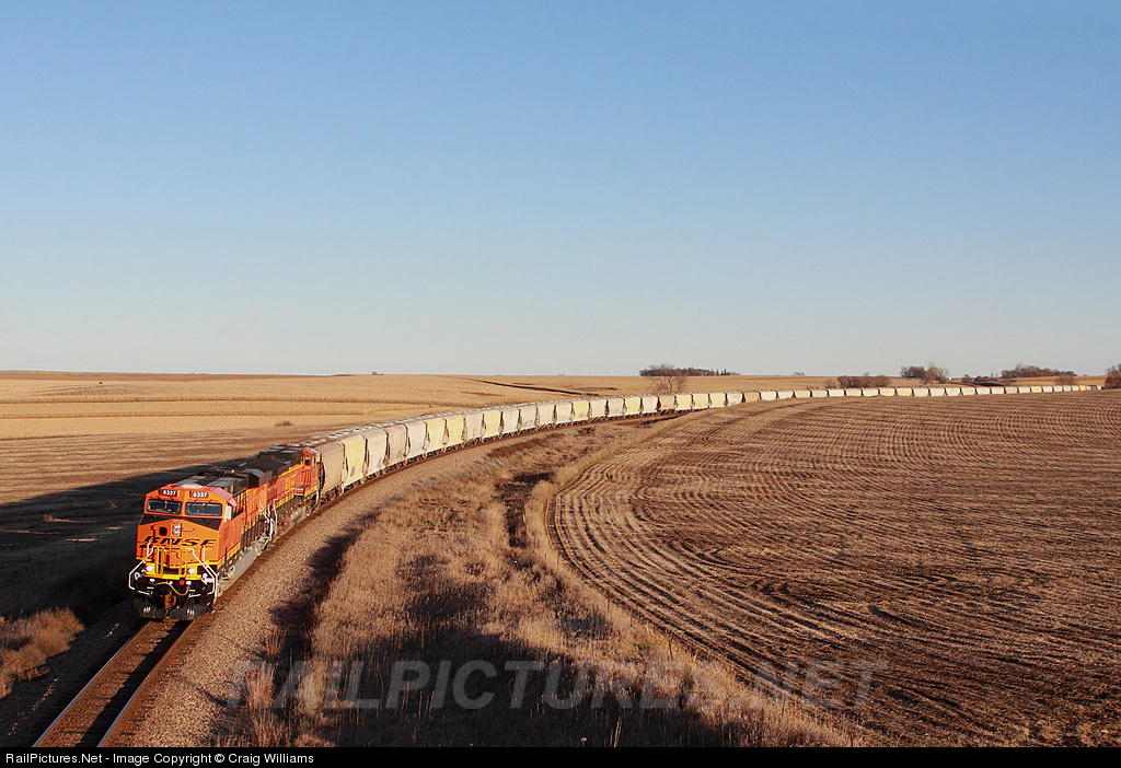 A loaded cement train from Pueblo, CO to Sioux Falls, SD, glides down the .60% grade towards Manly, MN. This train will turn the corner at Garretson, SD, in 12 miles onto the Corson Sub for the trip into Sioux Falls. This is the 38th train that has run to Sioux Falls this year, as noted in the symbol.