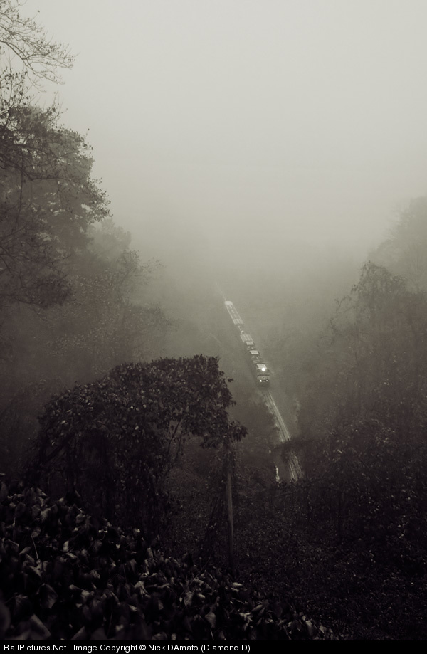 For the past hour, NS 135 has been on its hands and knees battling mother nature, climbing the rugged Blue Ridge mountains on a cold and rainy fall day. In a scene perfectly suited for Halloween, the train emerges from a blanket of clouds, soon to plunge back into darkness as it enters the Ridgecrest Tunnel. Thankfully as the name implies, the tunnel marks the summit of the grade, and soon the train will be running downhill toward a stop in Asheville.