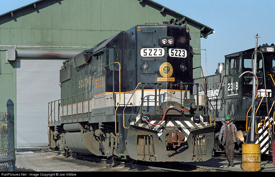 Built in January 1977 Southern GP38-2 5223 gets serviced at Ludlow.