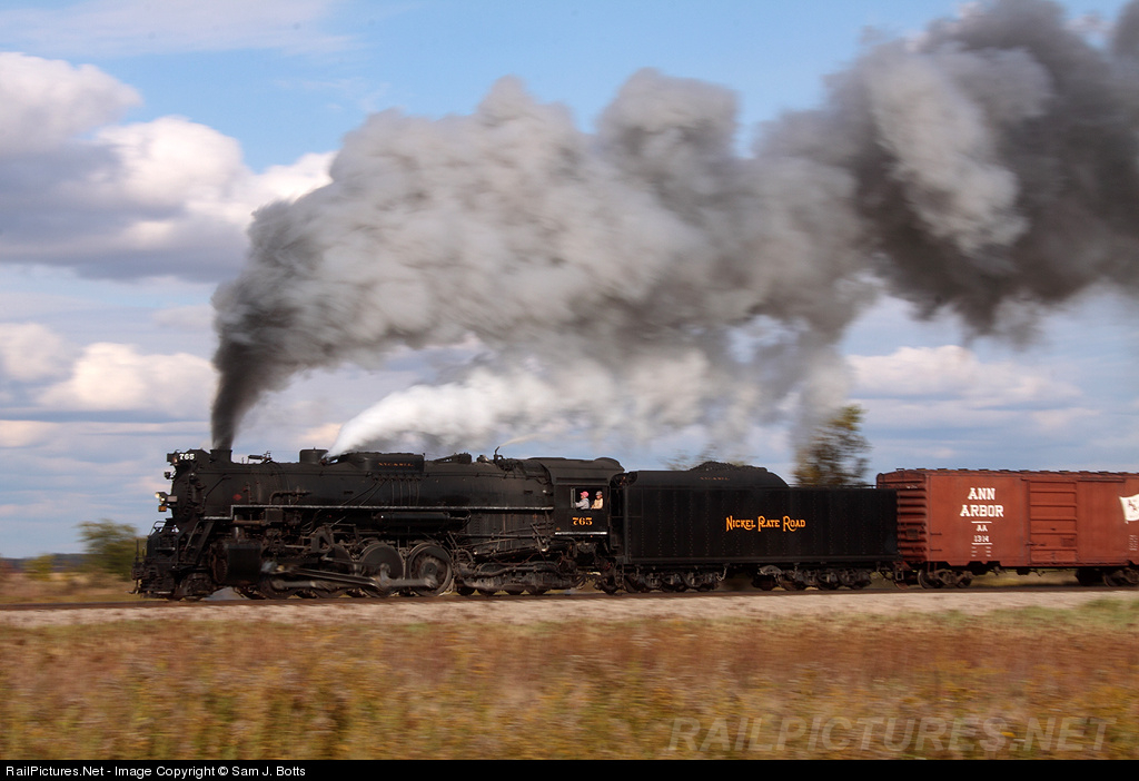 RailPictures.Net Photo: NKP 765 Nickel Plate Road Steam 2-8-4 at Carland, Michigan by Sam J. Botts