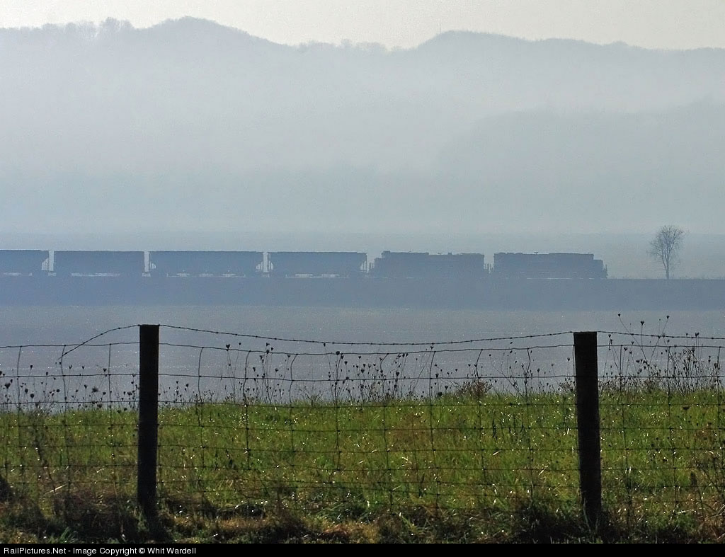 NS train 186 cuts through the fog as it rolls down the Scioto River Valley on crisp fall morning