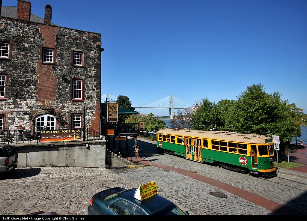 Several years ago one could see Norfolk Southern's (or Southern's) River Street Rambler freight train rolling along the cobblestone River Street in Savannah. In 2004 the City purchased the trackage from NS and as of early 2009 operates this streetcar back and forth on the one mile corridor along the Savannah River carrying shoppers, tourists and visitors. The streetcar is a 1930s era car that originally operated in Melbourne, Australia before being purchased by the City and restored into a modern bio-diesel rail car.