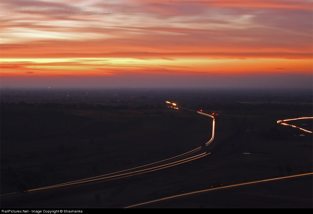 Under a dramatic dawn near Manmad, a lot of action is taking place at Ankai Fort station. A morning passenger is passing through on the line from Nanded, while a freight which was waiting at the station starts alongside. In the background, another freight comes in to halt outside the station, waiting for the lines to get clear. For a better geographical understanding of the location, check out http://tinyurl.com/yg86pme Canon EOS 350D @ 41mm, f/14 @ 84 sec