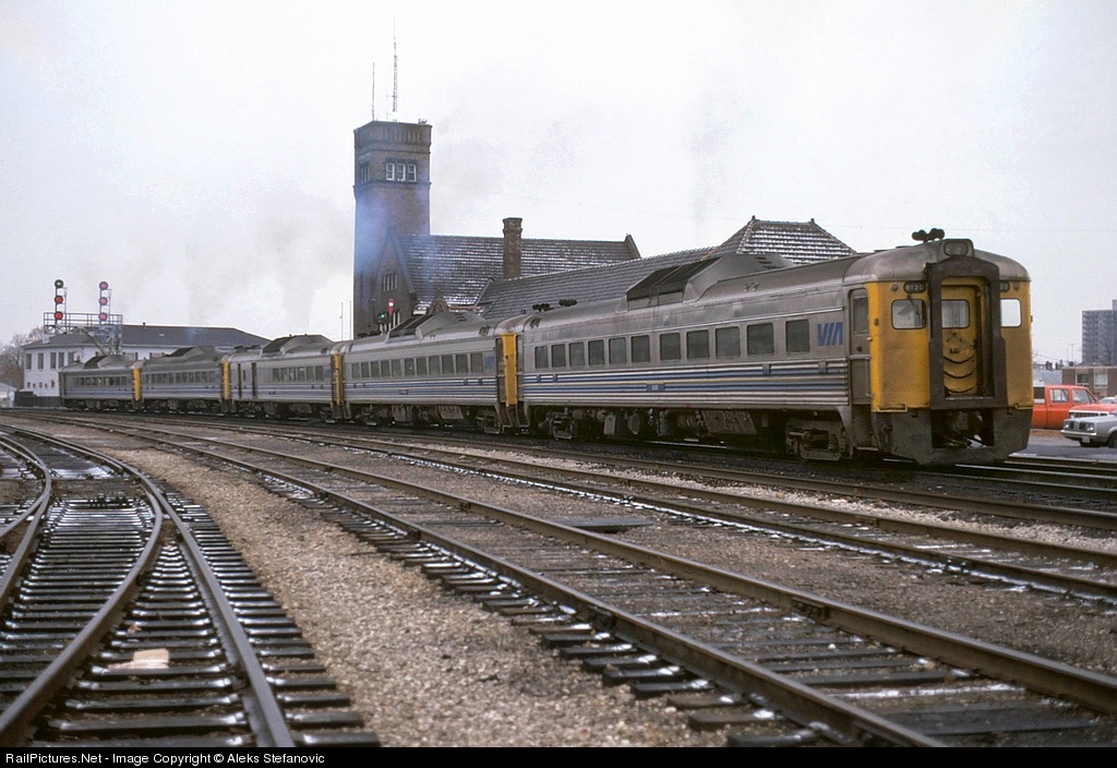 VIA 84 is departing Brantford after a 3 minute stop for passengers. VIA 6205 - 6129 - 6351 - 6104 - 6120 make up todays train headed for Toronto. 6205 is a former CN RDC-2, 6129 is an ex CP RDC-1, 6351 is an ex CN RDC-3, 6104 & 6120 are former CN RDC-1's.