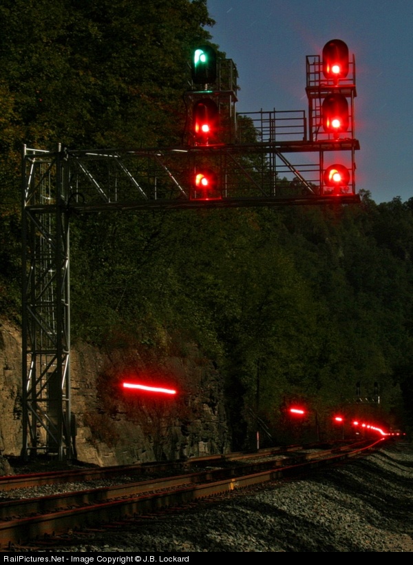 NS 234 leaves a marker for NS 218 to follow in the nite. NS 218 was right on 234's heels and will overtake it by Iaeger. It was very dark in this remote area. The long exposure makes it lighter out than it really was.