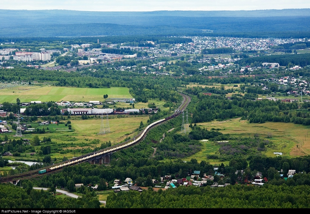 The viaduct over the road to Degtyarsk; the Revda river bridge; the stopping point Privokzalnaya; and the industrial station Zavodskaya can be seen on the photo.