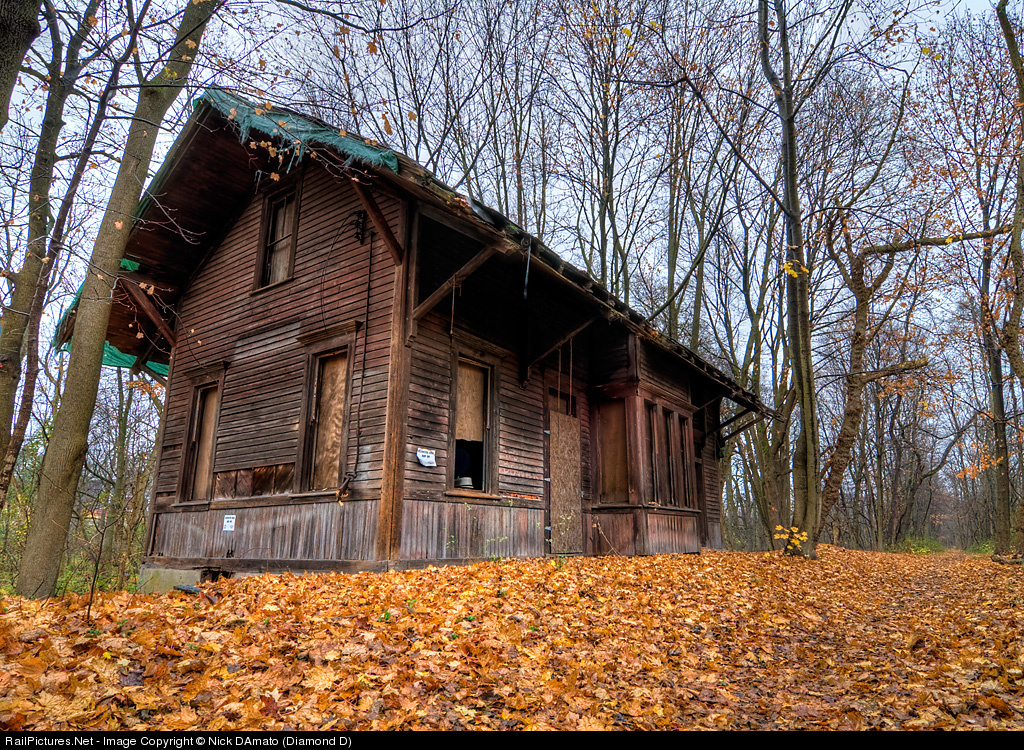 How many small towns across this country have a depot in just such condition? Tucked away in the quaint village of Pittstown, NJ, down what seems to be a private driveway (but is actually a public access point for the rail trail) the observant passerby will find the town's historic depot. Pittstown was the terminus of a short Lehigh Valley RR branch line from nearby Landsdowne. Once a bustling center of business where local farmers brought their peaches, milk, ice, and other goods to be loaded onto the rails for shipment to New York and Pennsylvania, today the structure is long neglected, but still stands to see another Fall.