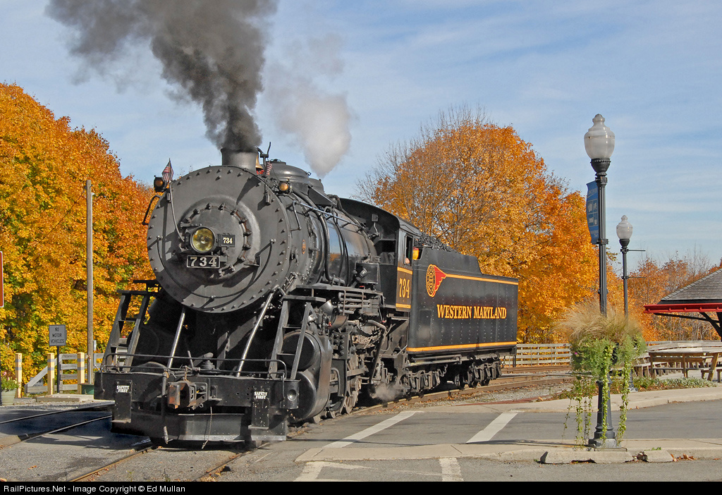 RailPictures.Net Photo: WMSR 734 Western Maryland Scenic Railroad Steam 2-8-0 at Frostburg, Maryland by Ed Mullan