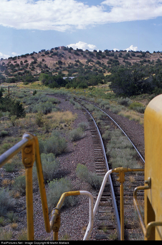 Desert railroading at it's finest! View from the brakeman's perch shows the ex-ATSF bolted rail and a fresh growth of weeds as #93 returns light to Santa Fe from Lamy. The GP-16 delivered ex-PRR private varnish "Louis Sockalexis" to Lamy to meet the westbound Southwest Chief.