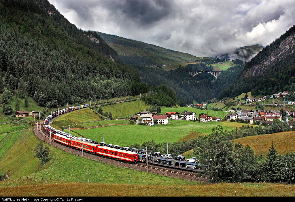 | MÁV's train on the Brennerbahn! The Austrian railwaymans checked quality of the rails with the Hungarians' train. This very is special, that a Hungarian train goes on the Brenner pass. The train went slowly up on the pass. In the background seen the famous bridge of St. Jodok. The weather was rainy and gloomy, but sometimes the sun came out from behind the clouds. This a rare moment... |