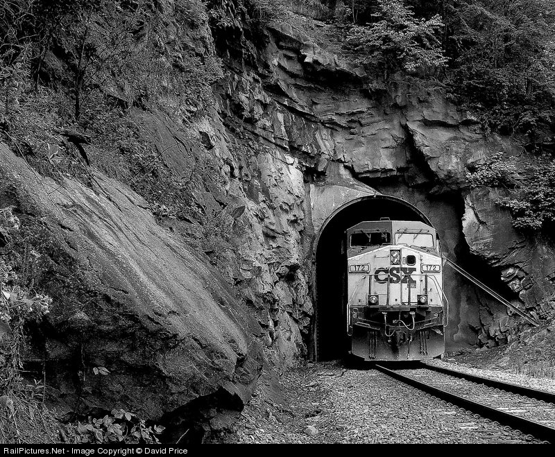 | Deep in the Breaks Gorge, CSX 172 is framed by the unique portal on the south end of Stateline Tunnel, accessible only by a nice long stroll. |