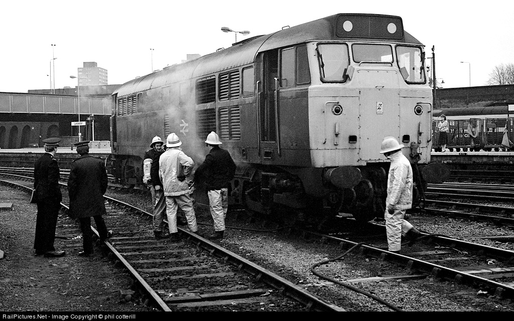 | The local fire brigade have extinguished a bogie fire on 31414 and keep watch in case of another flare up. The loco had caught fire while approaching Leicester with the 0805 Birmingham to Norwich. |