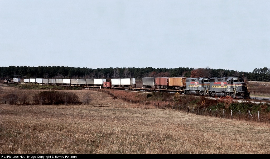Newly inaugerated piggyback train, complete with double-caboose, operated between Atlanta, GA and Montgomery and Mobile, AL. Upon arrival in Montgomery, the train will be uncoupled behind the first caboose, and the lead section will continue to Mobile. The trailing section will be moved from Western Railway of Alabama Chester Yard to the circus ramp at L&N's Montgomery Yard