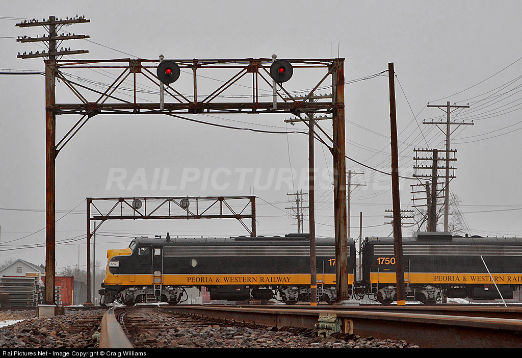 You are looking east on main # 1 at Bushnell, as the Peoria Western's westbound local crawls across the diamond at Bushnell on their way towards Good Hope, IL, to meet the eastbound job out of Keokuk, IA. Today's train has 22 cars in tow as they make their way west with the 2 F-units.