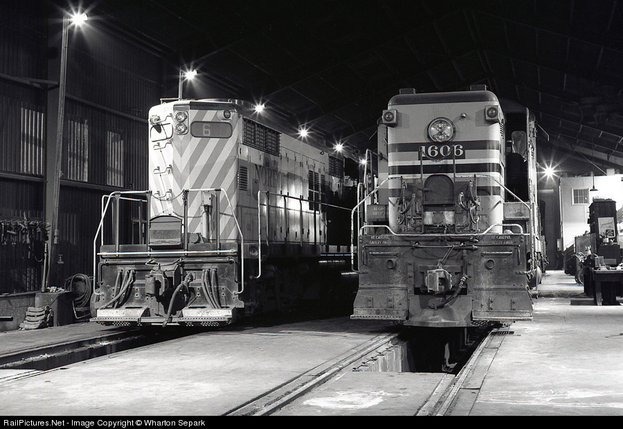 | We are taking a closer look at the inside of the shop at "Original" Norfolk Southern's Glenwood Yard in Raleigh, NC. GP18 #6 and Baldwin AS-416 #1606 are inside for routine maintenance and inspections and will be back in service in the morning for local and yard assignments. |