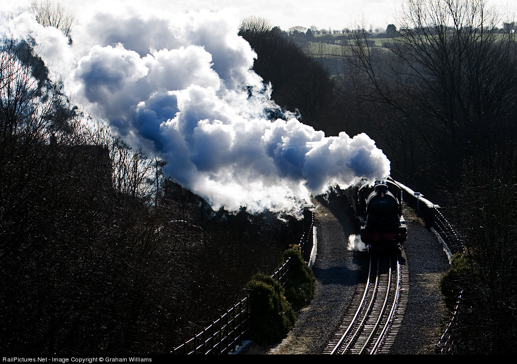 | The lovely K4 no. 61994 has spent the winter on the East Lancashire Railway. Here we see it on its last day before leaving. It is crossing Brooksbottom viaduct, approaching the tunnel with a train to Rawtenstall. |
