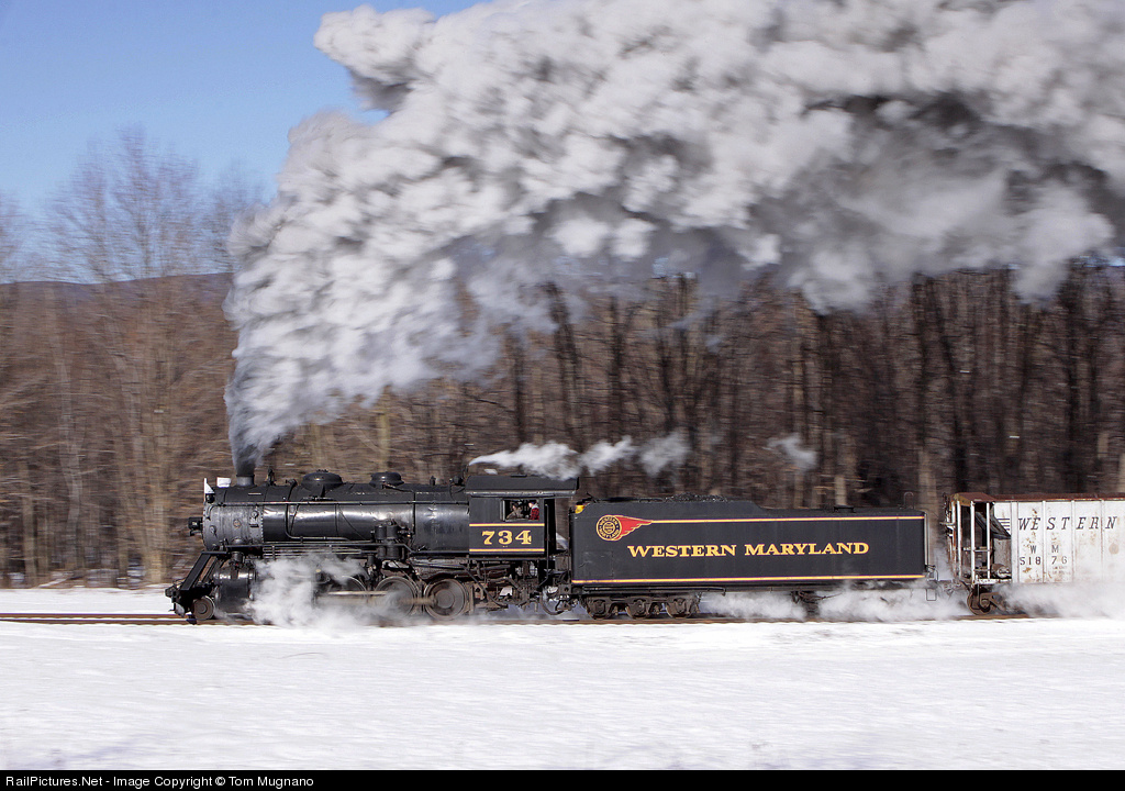 RailPictures.Net Photo: WMSR 734 Western Maryland Scenic Railroad Steam 2-8-0 at Frostburg, Maryland by Tom Mugnano