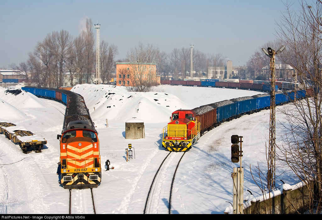 A29 037 and 2022 043 are both shunting coal trains at the busy Freeport, Csepel.