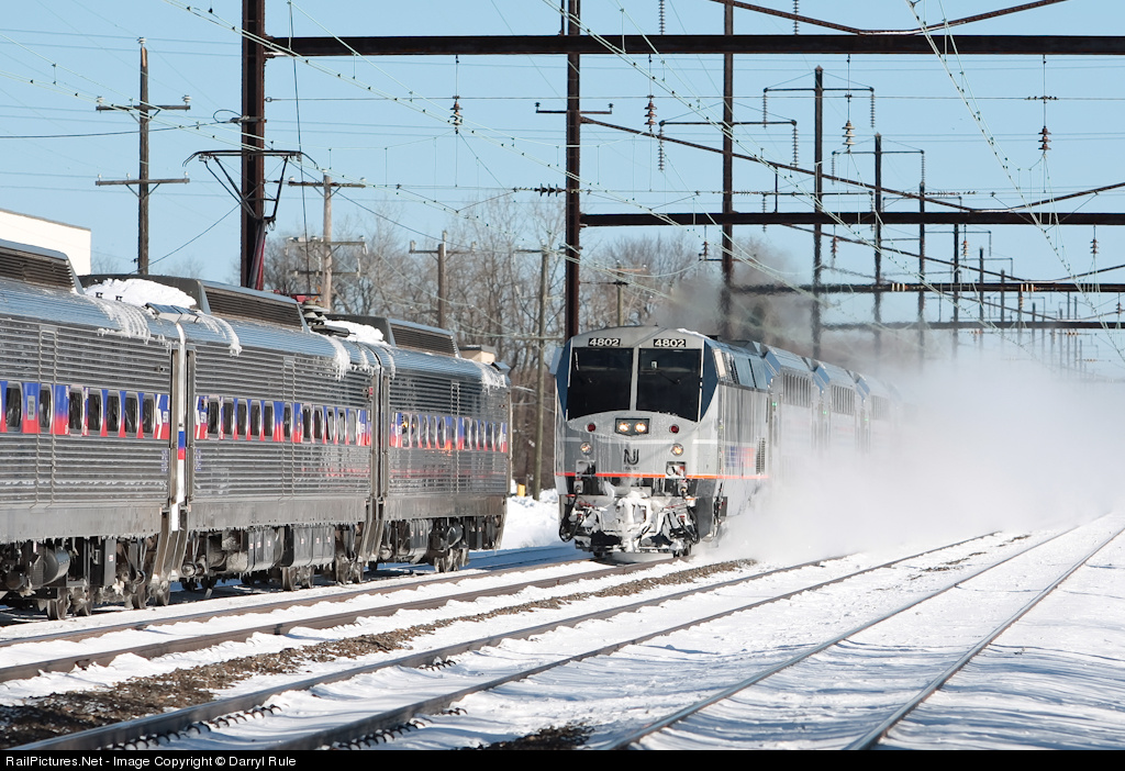 Due to the blizzard that hit the Southeastern PA area, the Northeast Corridor has been very quiet, but Levittown is a busy place at 10:30 on Sunday morning. A SEPTA regional rail train is stopped just North of the station due to malfunctioning brakes. Just behind me, a Nortbound regional rail train is making a station stop, and with horn sounding, NJT 4802 roars by the stopped trained headed for Atlantic City.