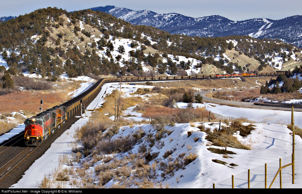 With two sets of power contributing a combined 40,500 horse power, this coal train had no problem surmounting Soldier Summit. That much power was unheard of until recent times as it would have pulled drawbars out prior to metallurgical and engineering improvements that have allowed heavier trains.