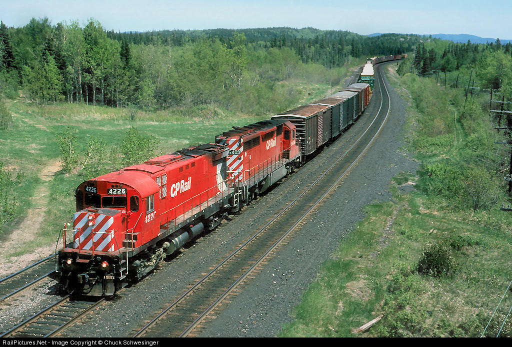 Well its not a six axle Big M-liner, but by this date on CP it's about as good as it gets. C424 4226 leads Ex QNS&L 5409 on train 935 at Terrace Bay.