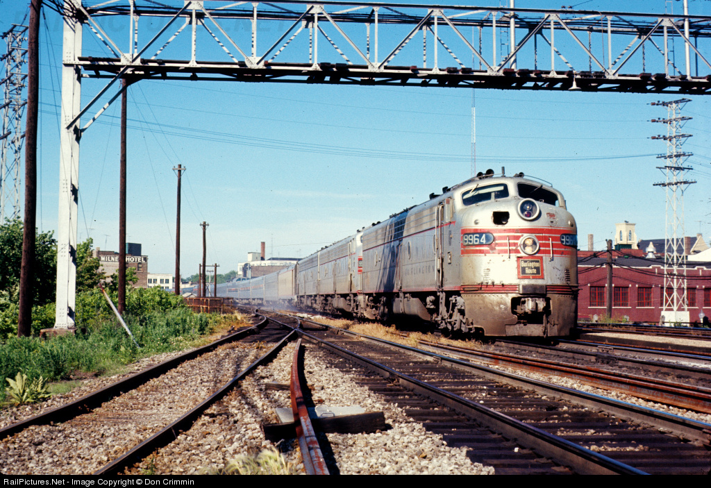 RailPictures.Net Photo: CB&Q 9964 Chicago Burlington & Quincy Railroad EMD E8(A) at Aurora, Illinois by Don Crimmin