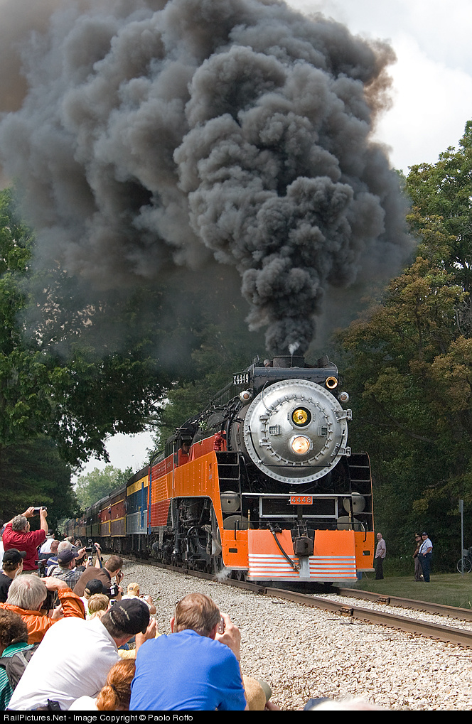 | Why We Made The Trip. With admirers packed into Woodland Park, Espee 4449 demonstrates why so many people made the trek to central Michigan. From across the track, a Gratiot County sheriff's deputy keeps watch to ensure there are no shenanigans. |