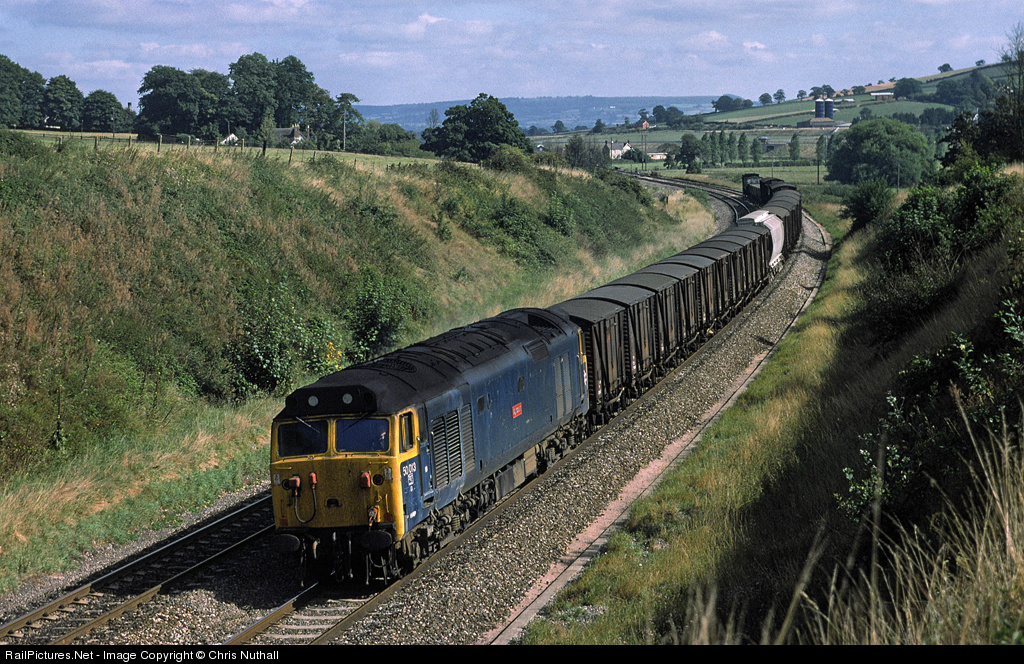 English Electric Class 50 50013 "Agincourt" leans into the curve between Hele and Silverton, Devon, on a westbound goods, including a rake of four-wheeled vans, in August 1978. Revisiting this location nearly 30 years later found it obscured by tree growth.