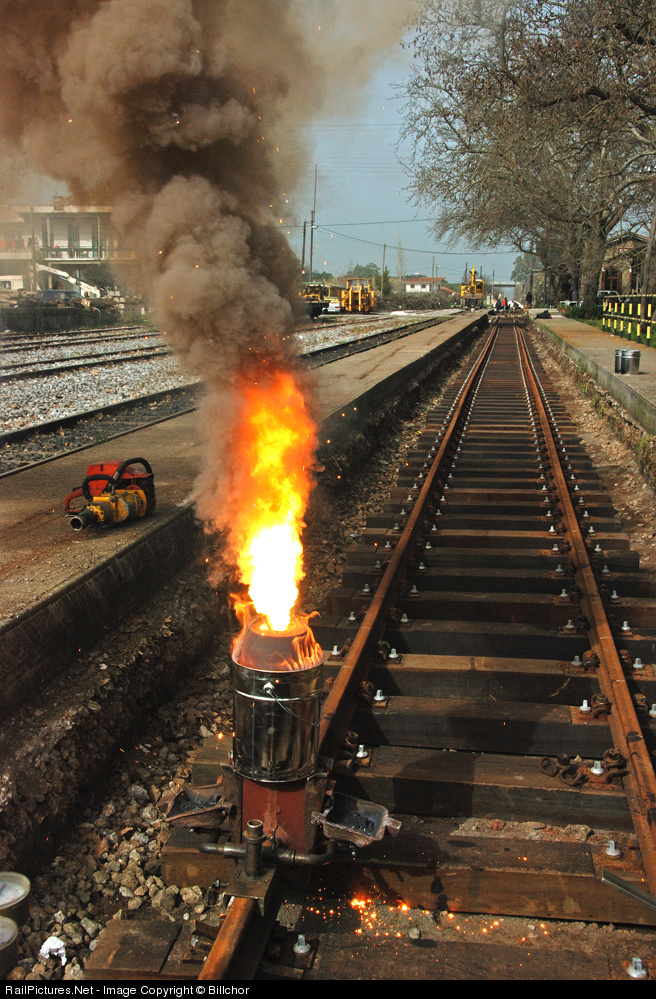 The weld of rails.The colliquation of steel inside the bain-marie.The fluid metal will switch the rails after 5 minutes about.